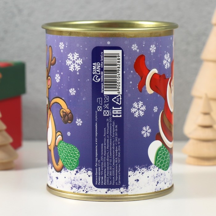 Носки в банке "Тот год пережили и этот переживем" (внутри носки мужские, цвет чёрный)