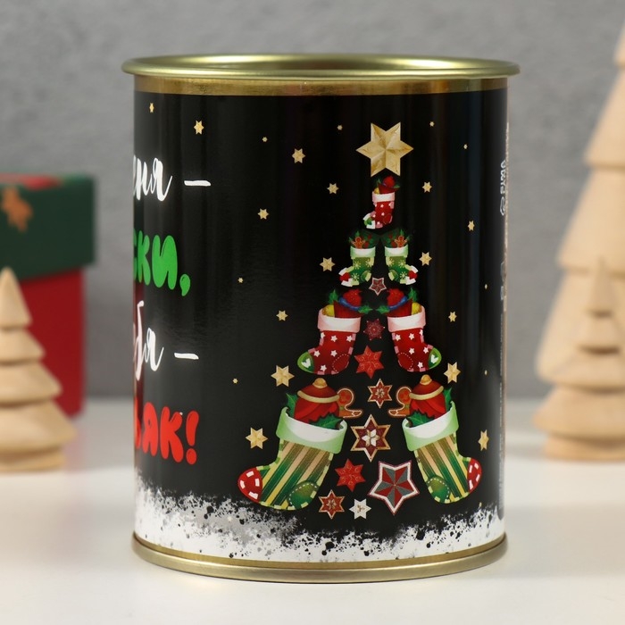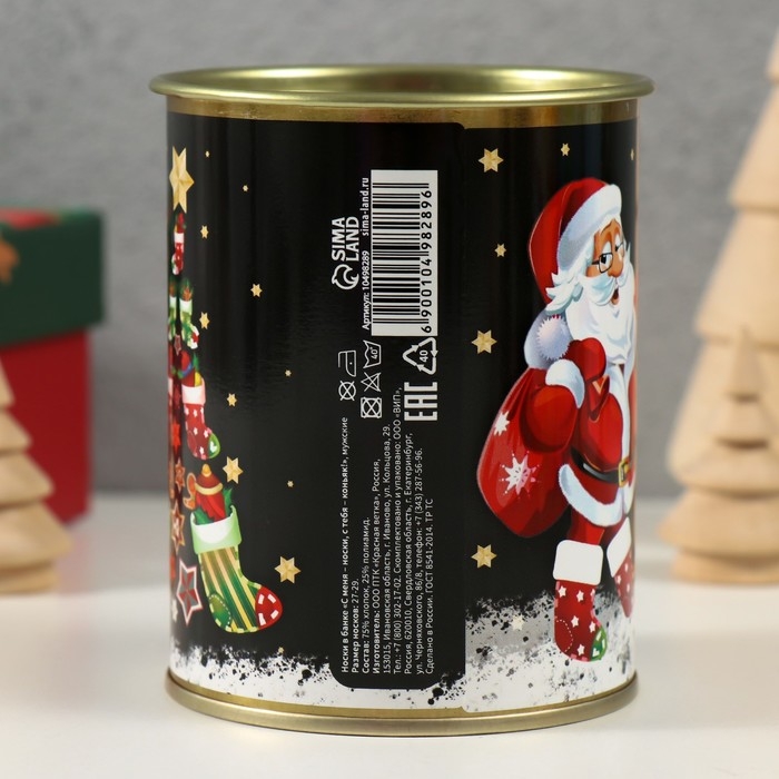 Носки в банке "С меня - носки, с тебя - коньяк!" (внутри носки мужские, цвет чёрный)