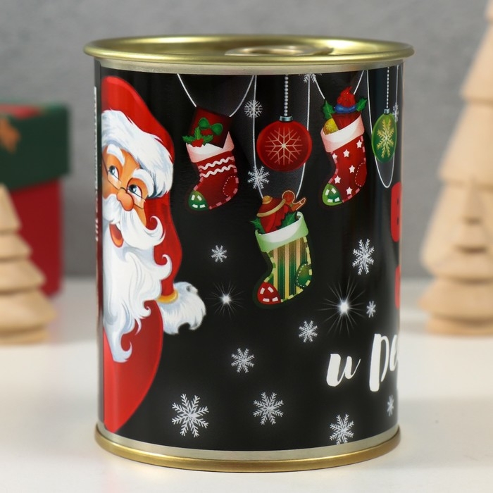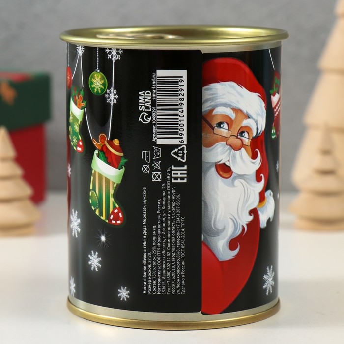 Носки в банке "Верю в тебя и деда мороза" (внутри носки мужские, цвет чёрный)