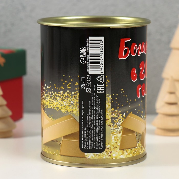 Носки в банке "Богатства в 2025 году" (внутри носки мужские, цвет чёрный)
