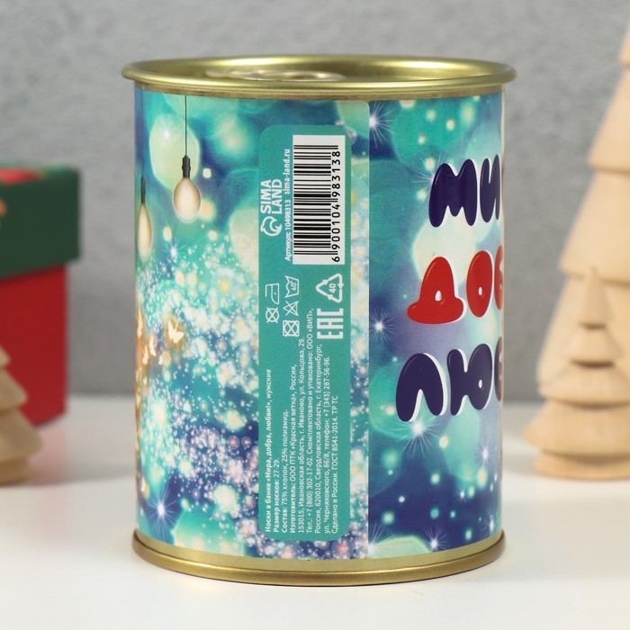 Носки в банке "Мира, добра, любви" (внутри носки мужские, цвет чёрный)