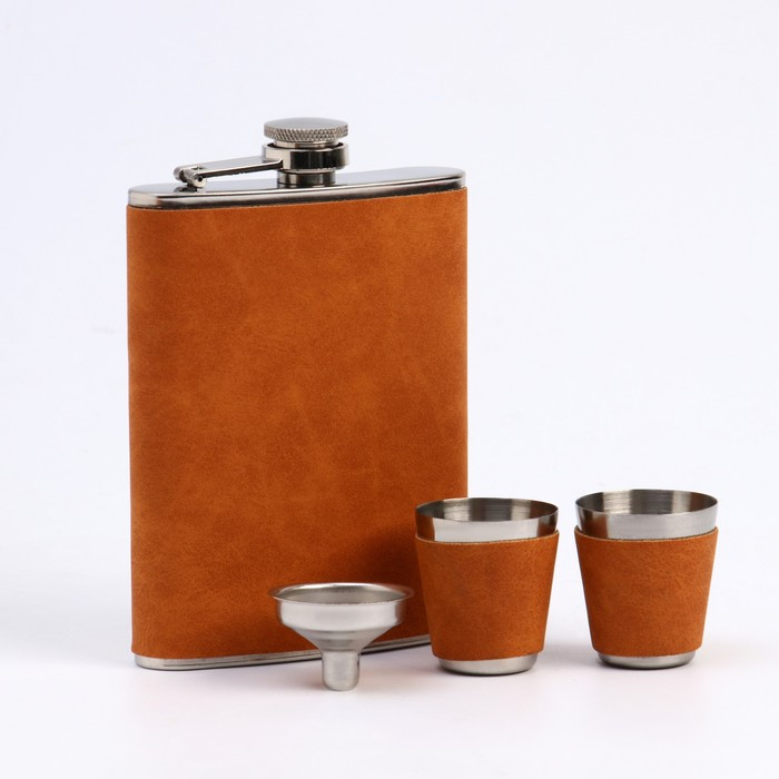 Подарочный набор "Майкл" 4 в 1: фляжка 240 мл, воронка, 2 рюмки, коричневый, 15 х 17 см