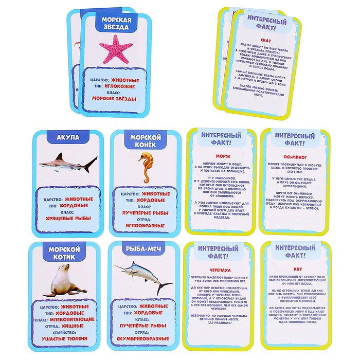 Развивающий набор «Подводный мир» — это увлекательная карточная игра, которая познакомит малыша с самыми известными обитателями морей и океанов и множеством интересного.