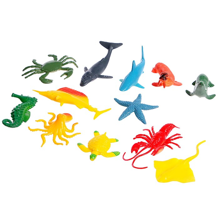 Набор состоит из надувного бассейна и фигурки рыбок, моржей, морских котиков и других морских обитателей. А чтобы малышу было интереснее знакомиться с ними, в комплекте есть цветные карточки с описанием животных.