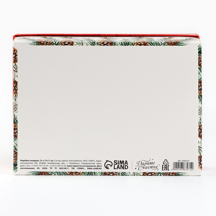 Коробка подарочная новогодняя складная «С новым годом», бант, 21 х 15 х 7 см, Новый год