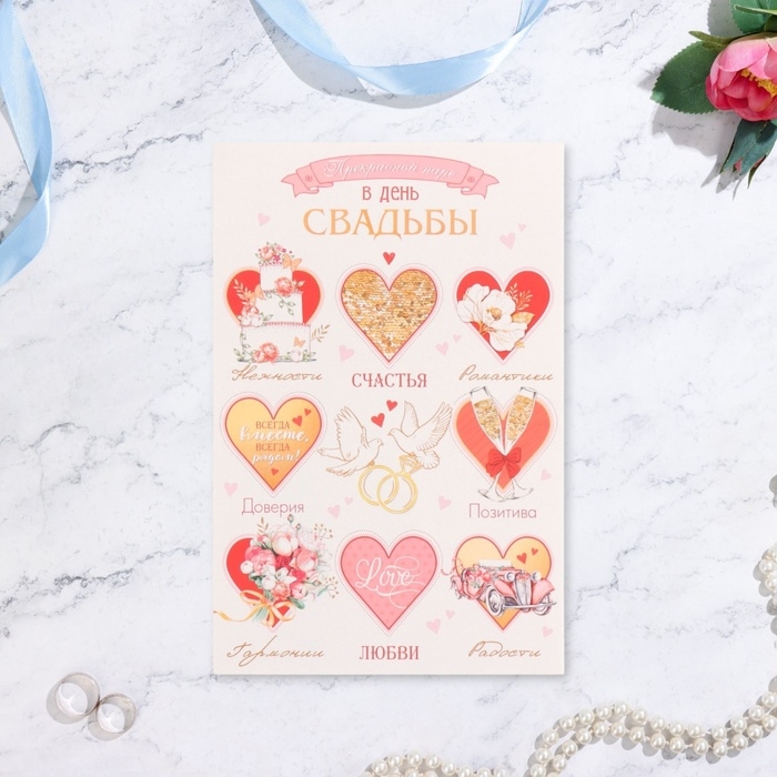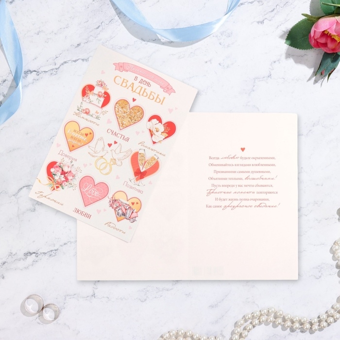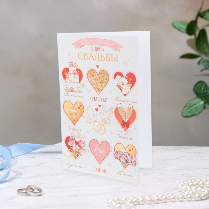 Открытка "Прекрасной паре в День Свадьбы!" сердечки, 19 х 29 см