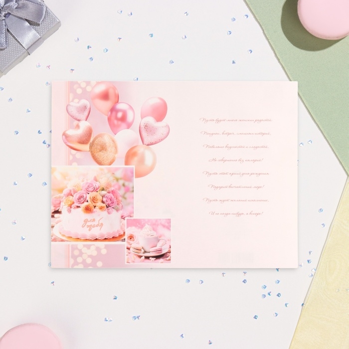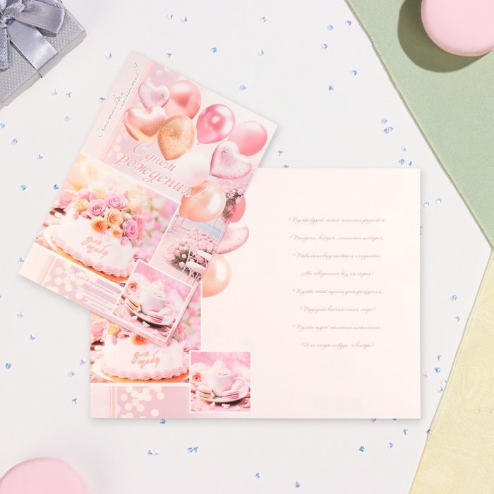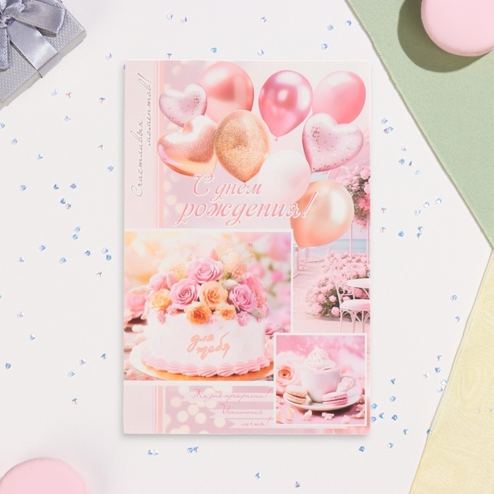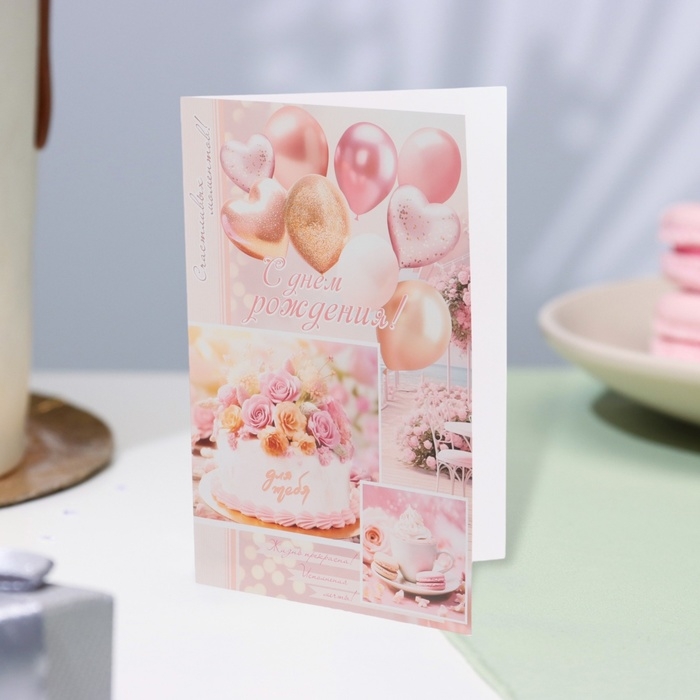 Открытка "С Днём Рождения!" шары, розовый фон, 19 х 29 см
