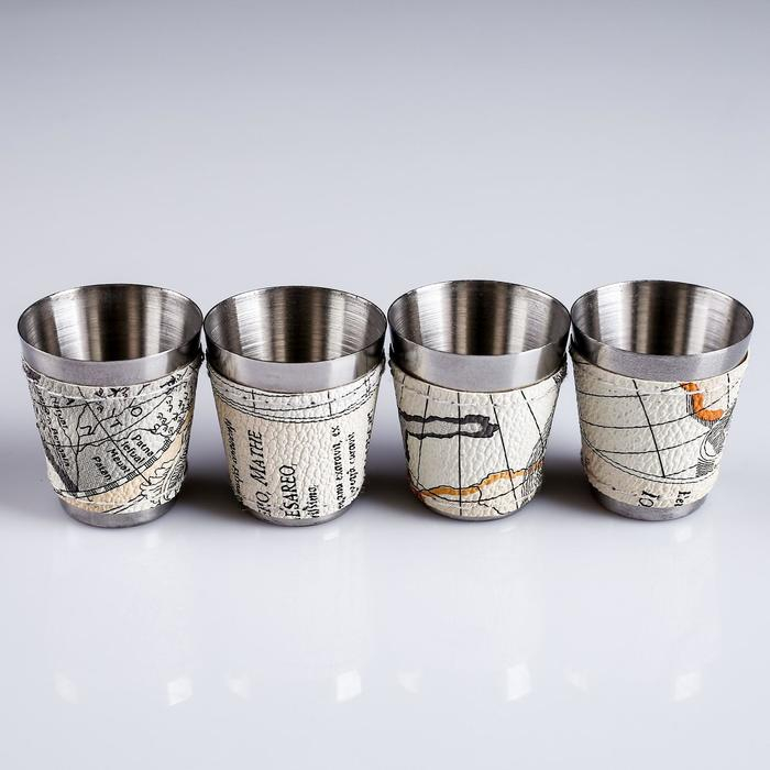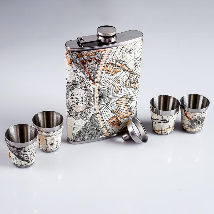 Подарочный набор 6 в 1 "Мир": фляжка 270 мл, воронка, 4 рюмки, серый, 17 х 23 см