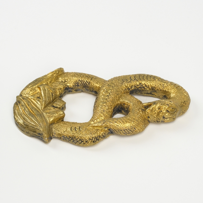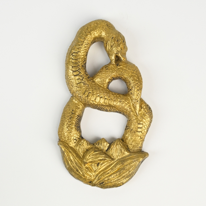 Новый год. Символ 2025. Панно с подвесом "Змея в цветке" старое золото, 12х7х1см