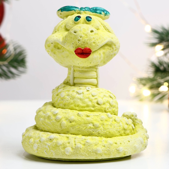 Новый год. Символ 2025. Фигура "Змея Марфа" лимонная, 8х7х6см