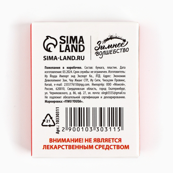 Новогодние пожелания в коробочке «Новый год: Любовь приносин», 10 свитков.