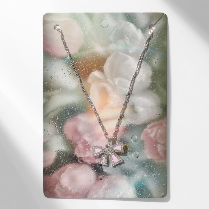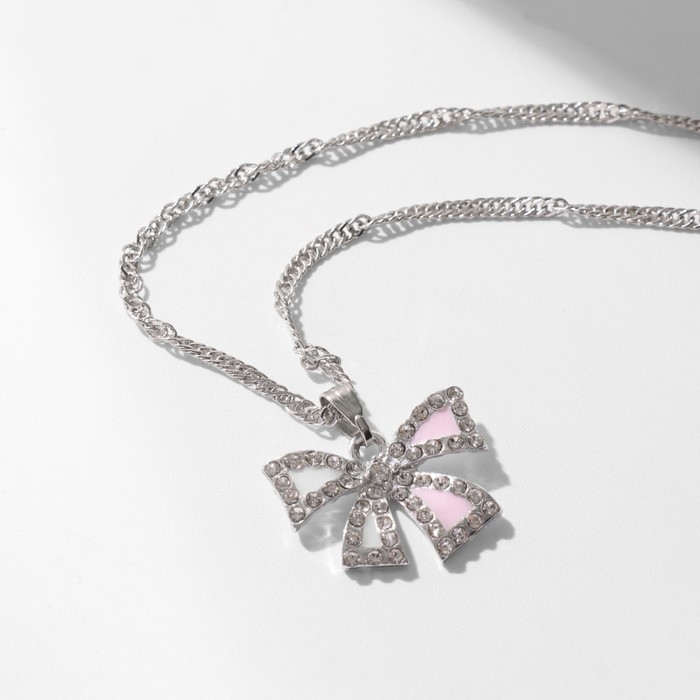 Кулон «Бант» романтика, цвет бело-розовый в серебре, 40 см