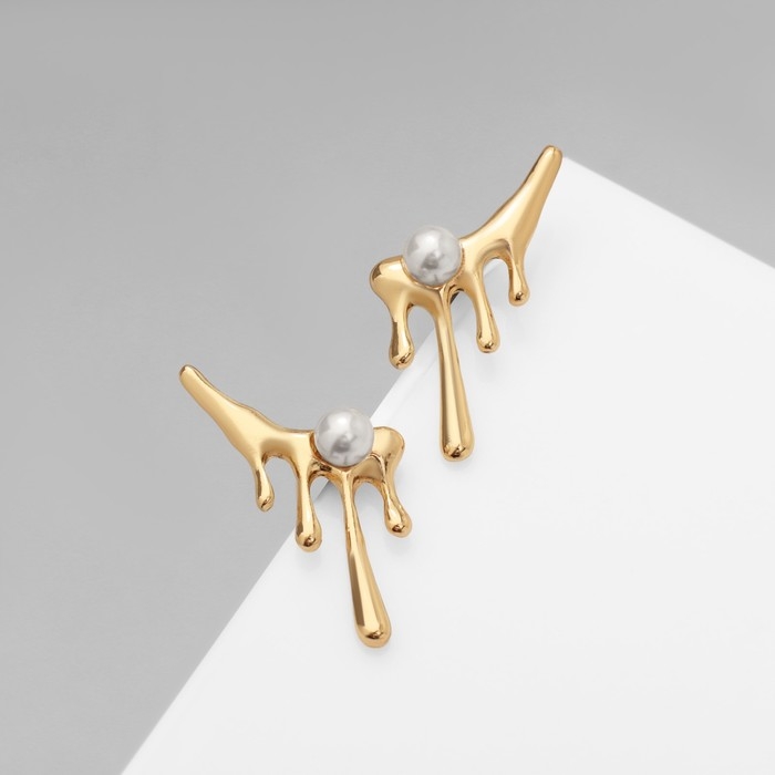 Серьги с жемчугом «Таяние» круг, цвет золото
