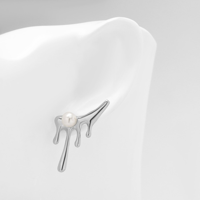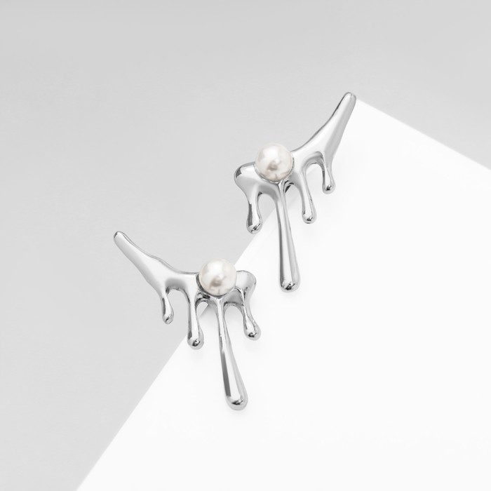 Серьги с жемчугом «Таяние» круг, цвет серебро