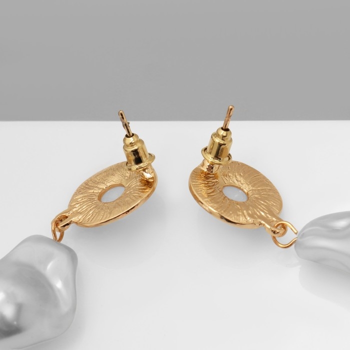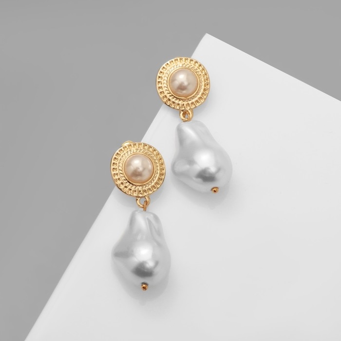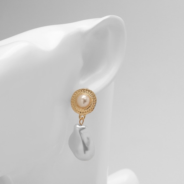 Серьги с жемчугом «Абстракция» крупная бусина, цвет золото