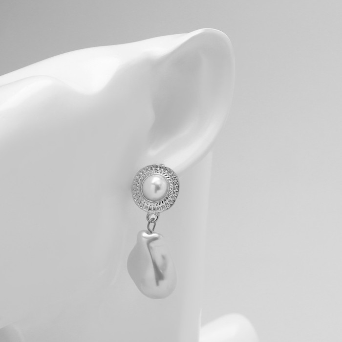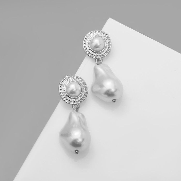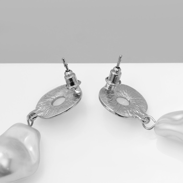 Серьги с жемчугом «Абстракция» крупная бусина, цвет серебро