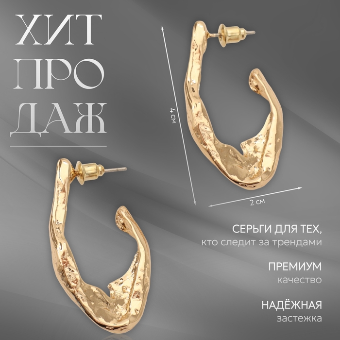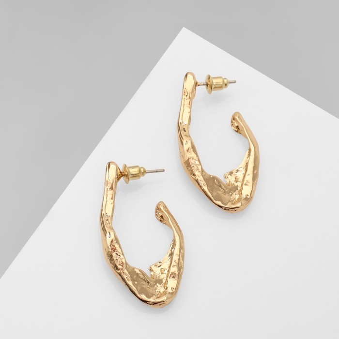 Серьги металл «Модерн» мятый крючок, цвет золото