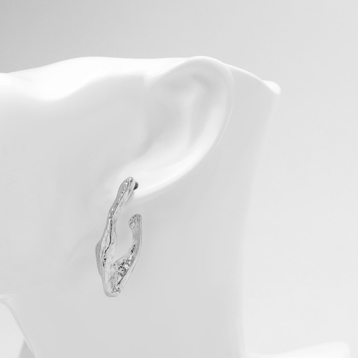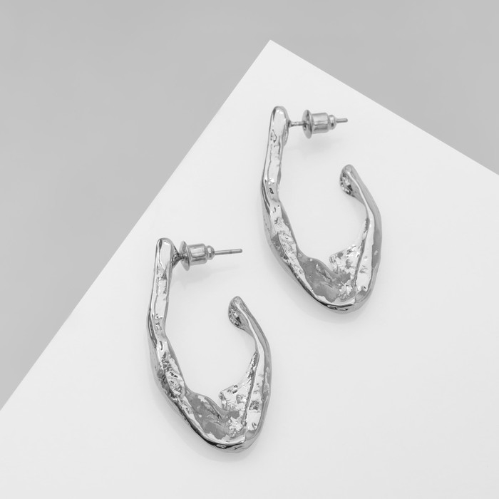 Серьги металл «Модерн» мятый крючок, цвет серебро