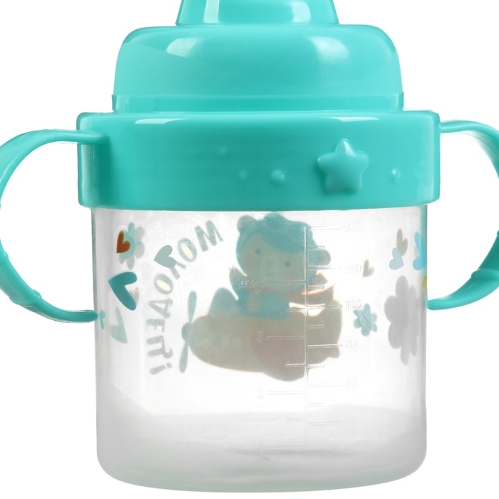 Поильник детский с твёрдым носиком «мишка», 140 мл., с ручками, цвет бирюзовый