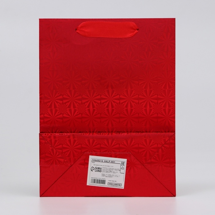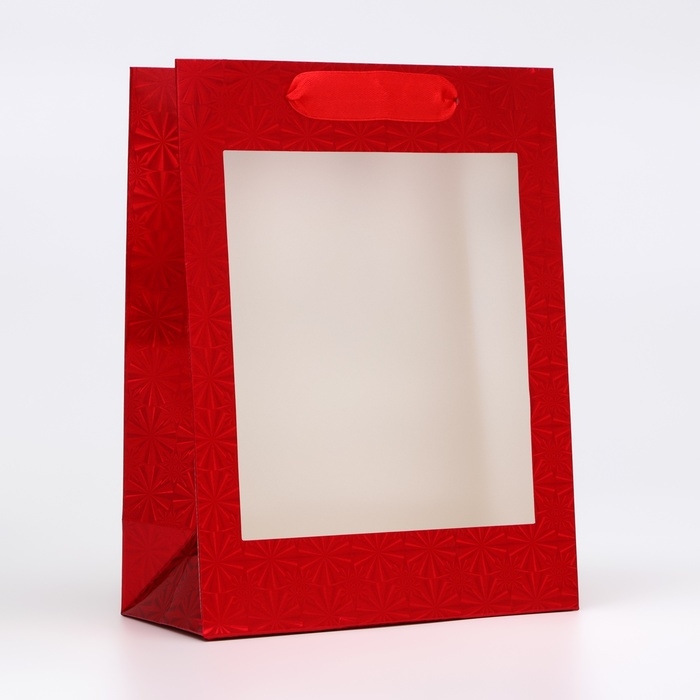 Пакет подарочный, фольгированный, упаковка, с окном, "Красный", S 23,5 х18 х 8,5 см