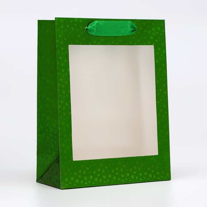 Пакет подарочный, фольгированный, упаковка, с окном, "Зеленый", S 23,5 х18 х 8,5 см