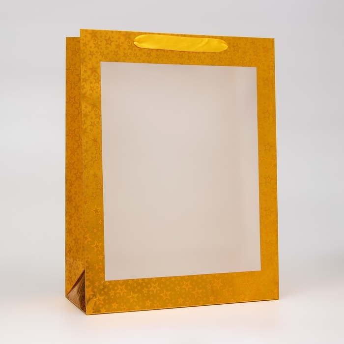 Пакет подарочный, фольгированный, упаковка, с окном, "Золотой", L 40 х 30 х 13 см