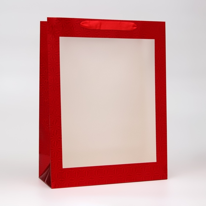 Пакет подарочный, фольгированный, упаковка, с окном, "Красный", L 40 х 30 х 13 см