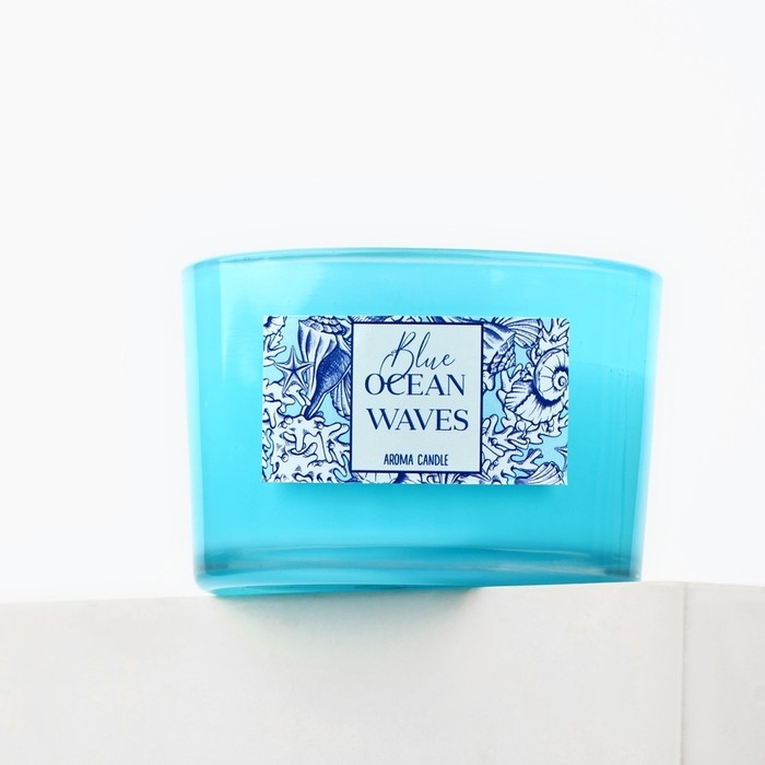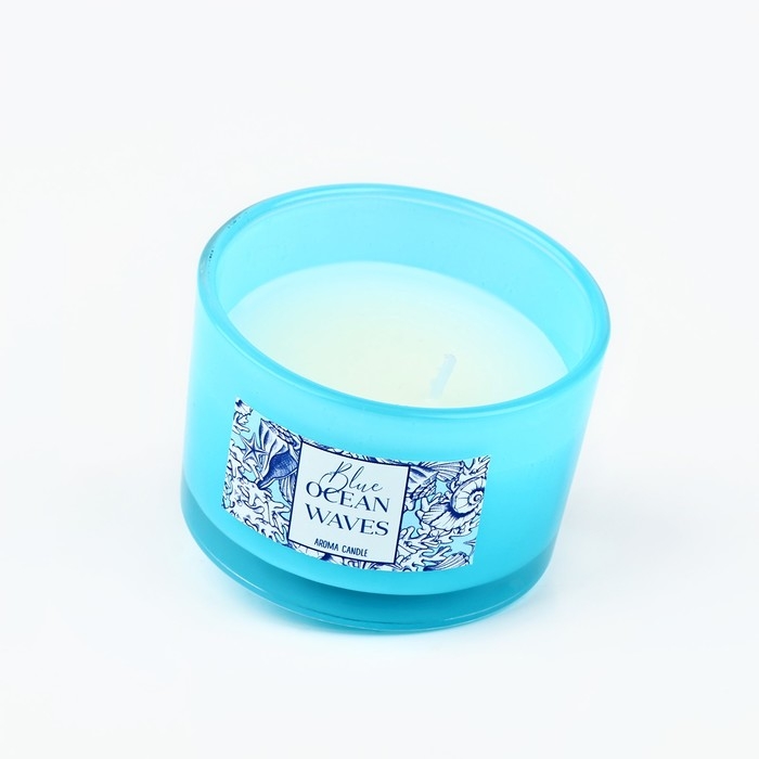 Свеча ароматическая в стекле «Blue ocean waves»: морской бриз, 5 х 7,1 см.