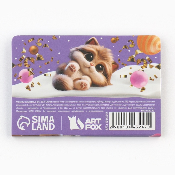 Новый год. Закладки для книг-стикеры «Ставь ёлку, я отвлеку кота», 4 шт, 20 л