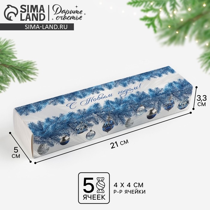 Коробка для конфет, кондитерская упаковка, 5 ячеек, «Новогодняя роскошь», 5 х 21 х 3.3 см, Новый год