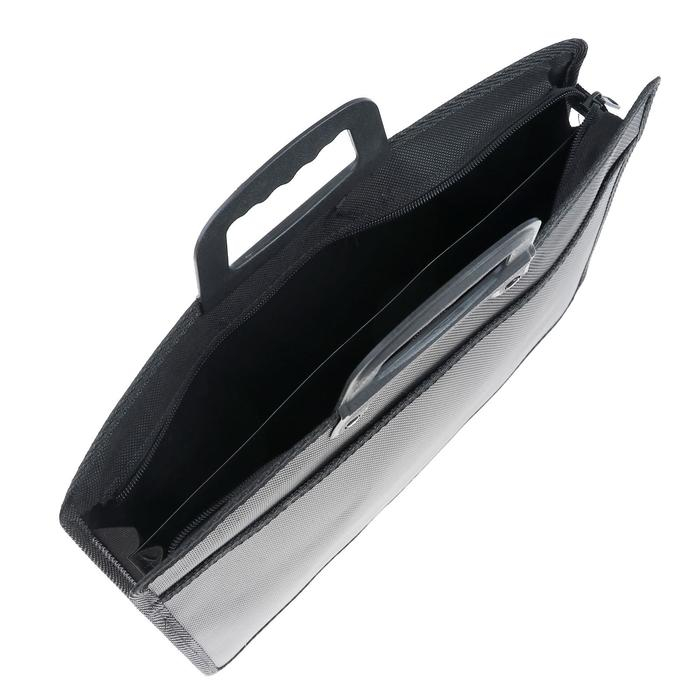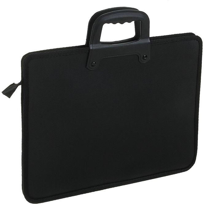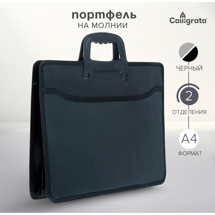 Портфель 2 отделения А4, пластиковый, с ручкой, на молнии, чёрный