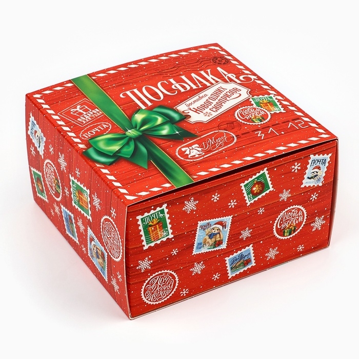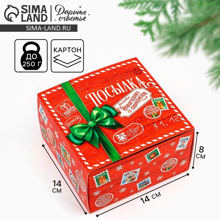 Коробка подарочная новогодняя складная «Новогодняя посылка», 14 х 14 х 8 см, Новый год