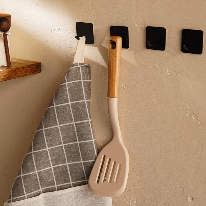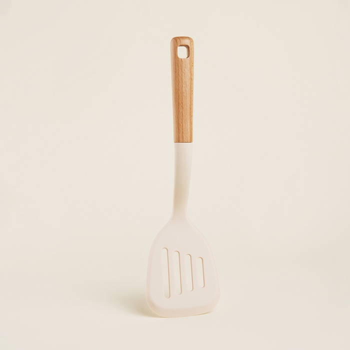 - Приятный дизайн: бежевый оттенок и натуральная деревянная ручка делают эту лопатку стильным элементом кухни.