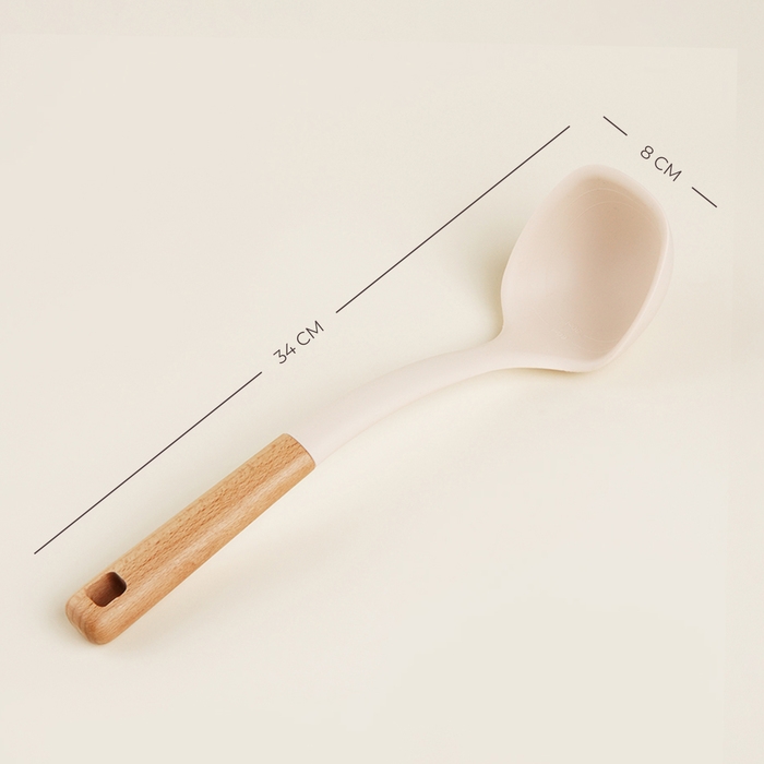 - Экологичные материалы: силиконовая рабочая часть и деревянная ручка делают этот половник безопасным для здоровья и окружающей среды.