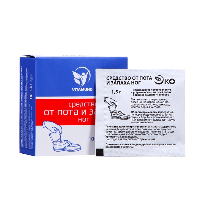 Средство от пота и запаха ног Vitamuno, 10 пакетиков по 1,5 г