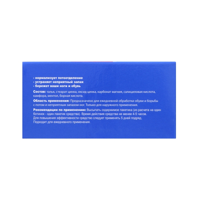 Способ применения: высыпать содержимое пакетика из расчета 1 пакетик в 1 ботинок.