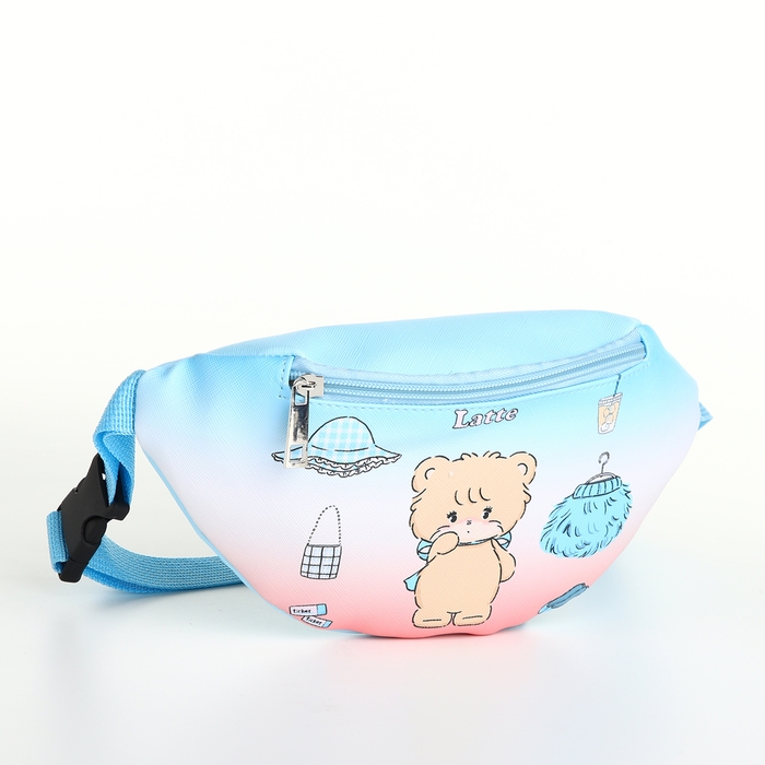 Сумка поясная детская на молнии, цвет голубой/розовый