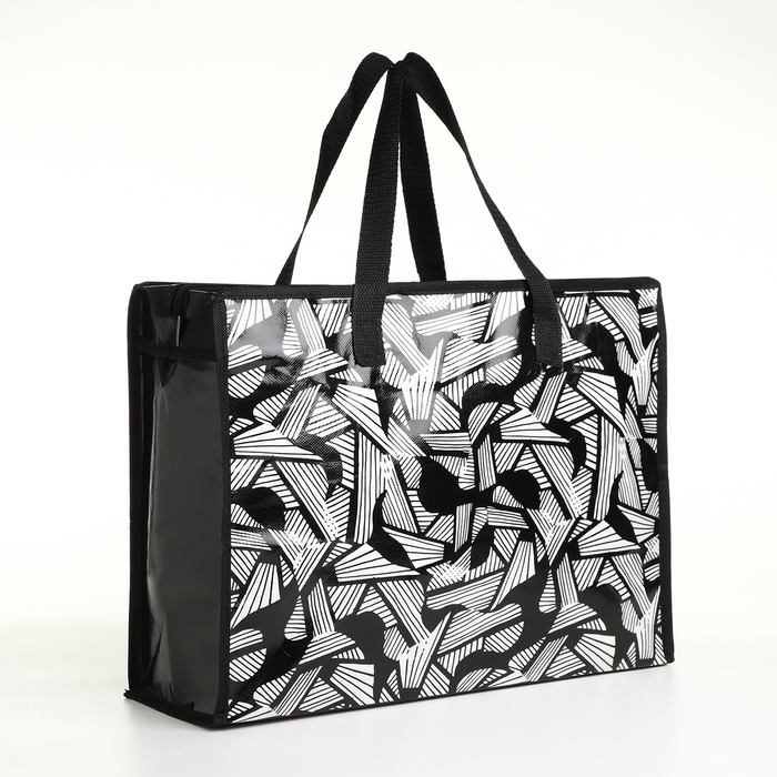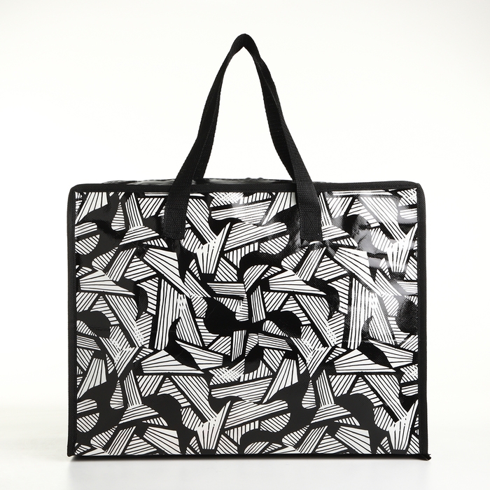 Сумка хозяйственная на молнии, цвет чёрный/белый
