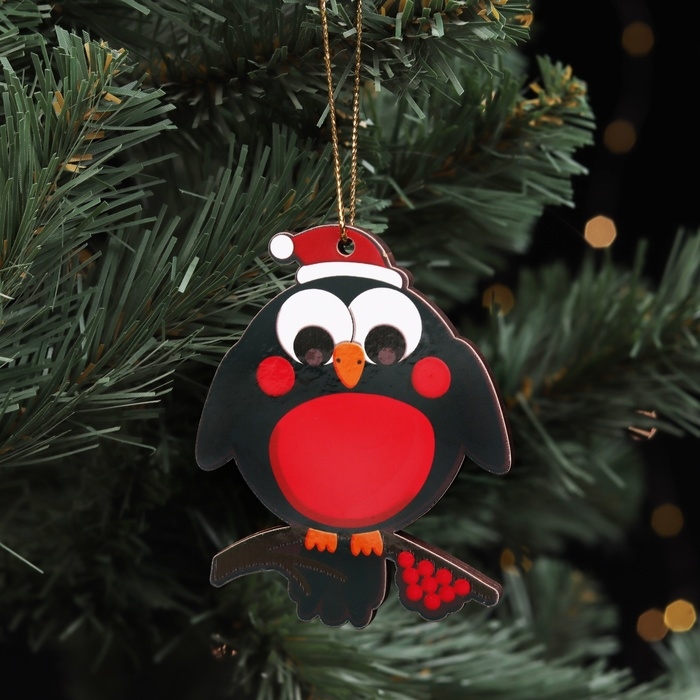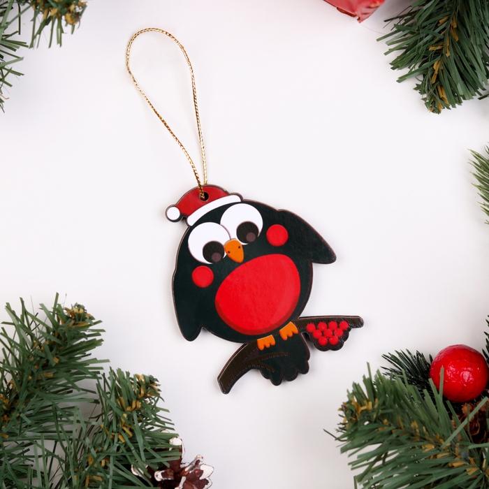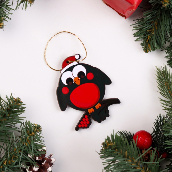 Ёлочная игрушка двусторонняя "Снегирь на ветке", 9х6 см