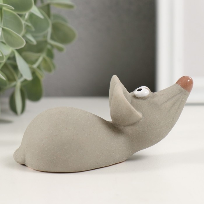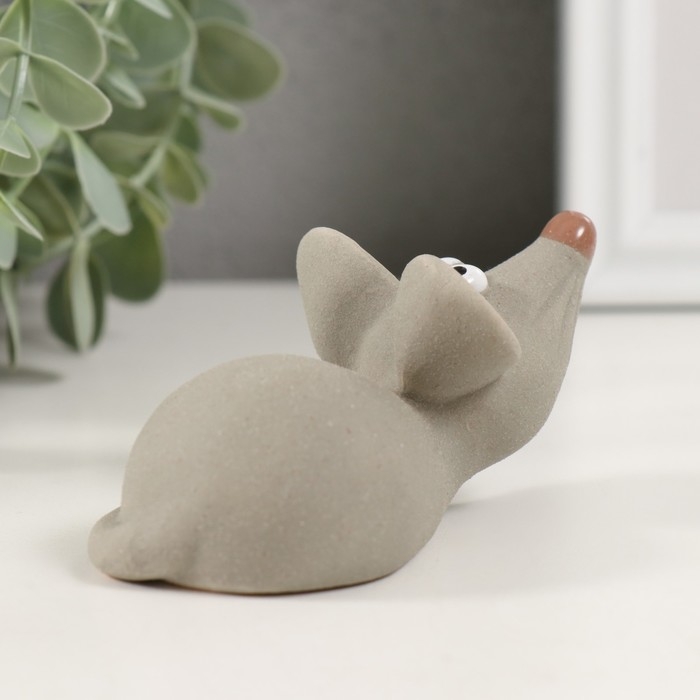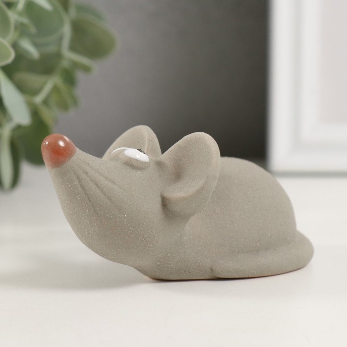 Сувенир керамика "Серая мышка с красным носиком" 5,5х10х5,5 см