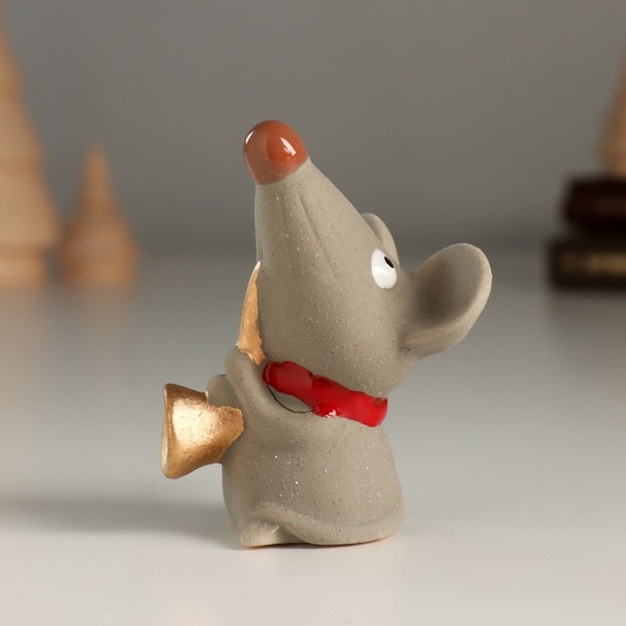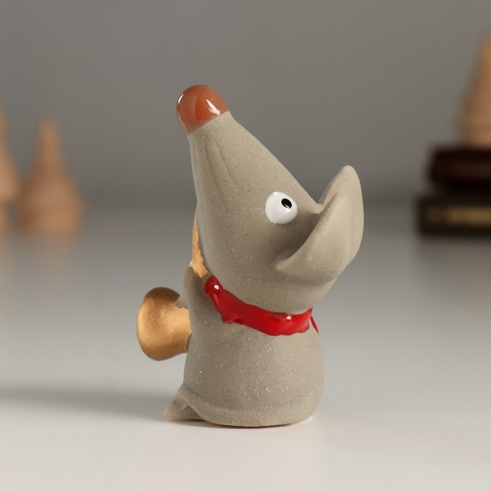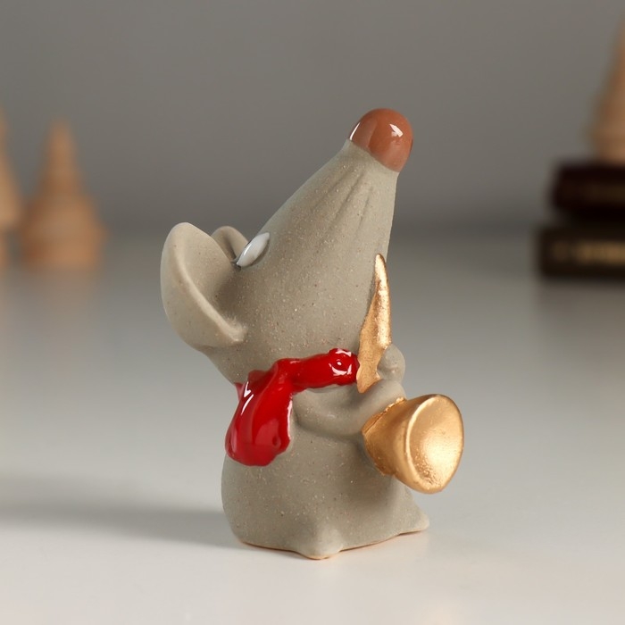 Сувенир керамика "Серый мышонок-трубач" 5,1х5,1х7,5 см
