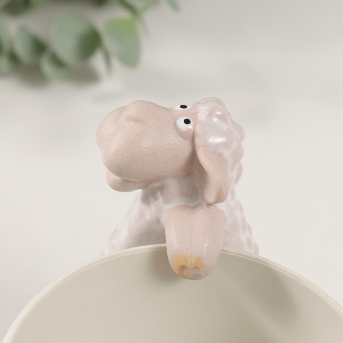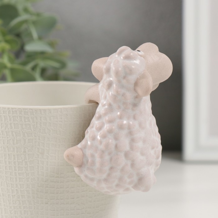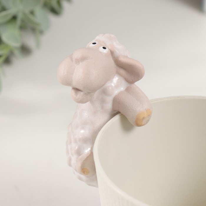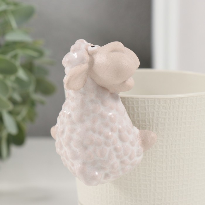 Сувенир керамика "Белая овечка" на кашпо 4,6х5,6х8,4 см