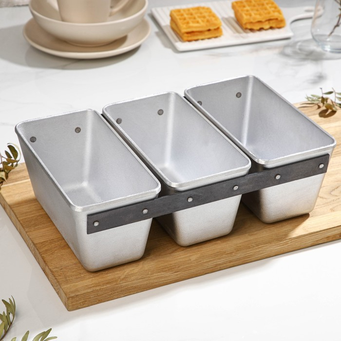Хлебная форма прямоугольная, 32,5×21×10 см, 3-х секционная