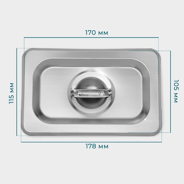 Крышка из нержавеющей стали к гастроемкости 1/9, 17,6×11,4 см, толщина 0,8 мм
