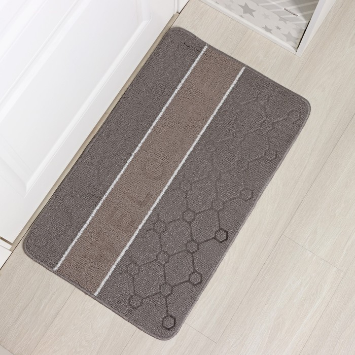 Коврик влаговпитывающий придверный Доляна «Welcome. Молекула», 48×78 см, цвет серый