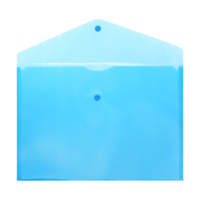 Папка-конверт формата А4 изготовлена из прозрачного полипропилена синего цвета. Закрывается на кнопку. Удобна для хранения и переноски документов, предотвращает их смятие и загрязнение. Отпускается одним набором по 4 штуки
