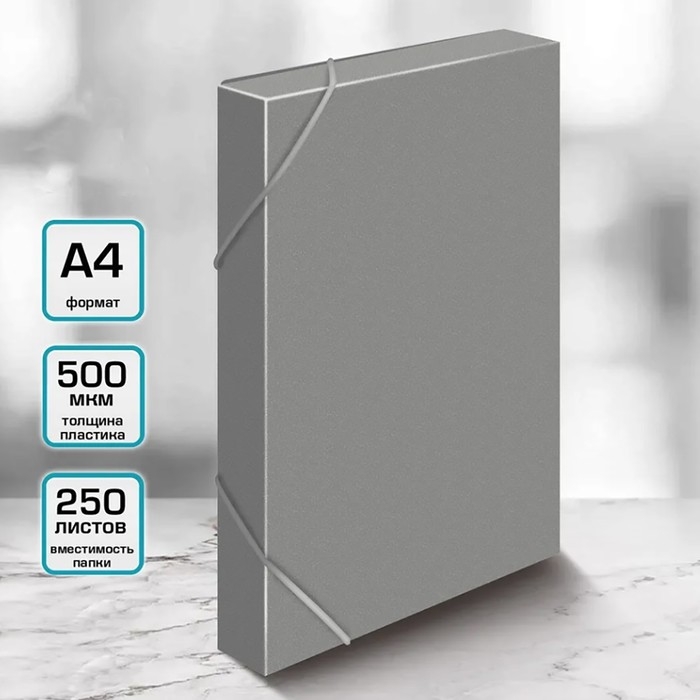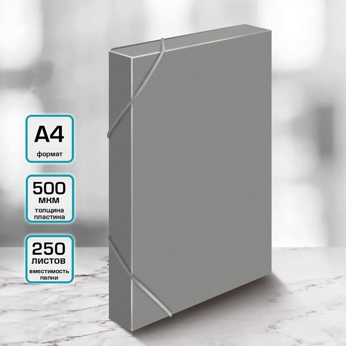 Папка-короб на резинке А4, 500мкм, Calligrata, корешок 25 мм, до 230 листов, тиснение "песок", серая