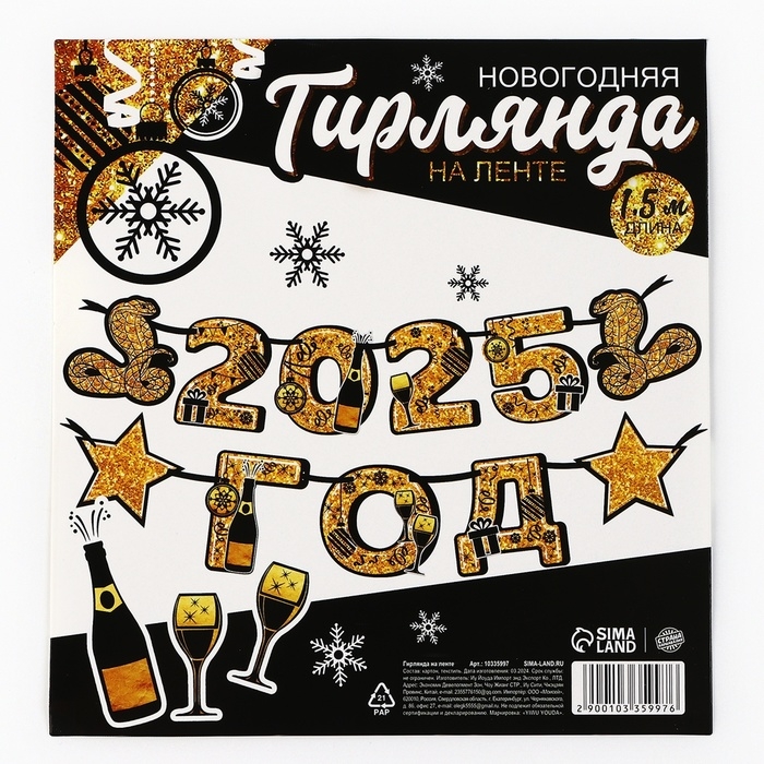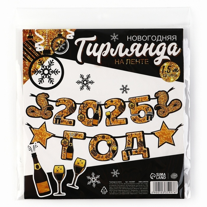 Гирлянда на ленте новогодняя «2025 год», на Новый год, длина 150 см