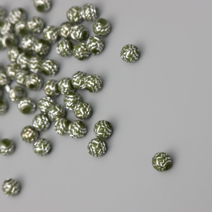 Бусины для творчества пластик "Шар зиг-заг" оливково-серебристые набор 20 гр0,6х0,6х0,6 см 1042857
