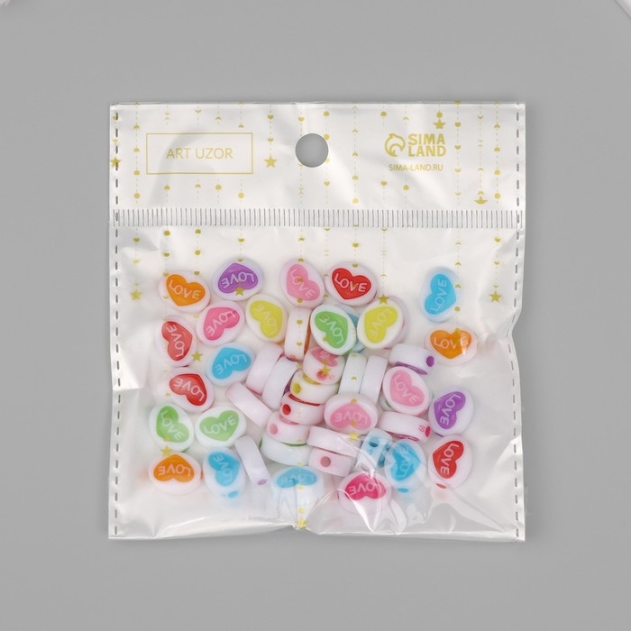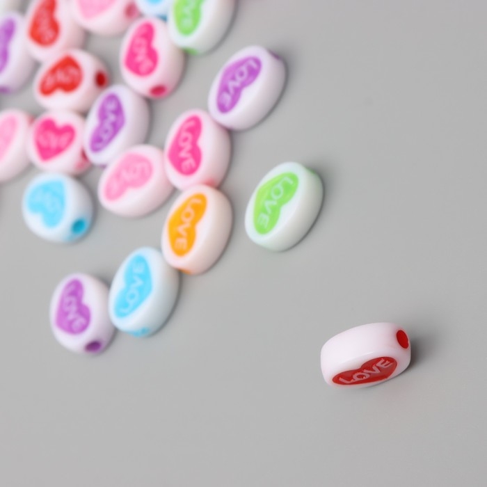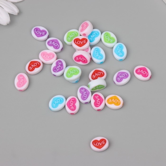 Бусины для творчества пластик "Сердце в овале" МИКС набор 20 гр 1,3х1х0,5 см